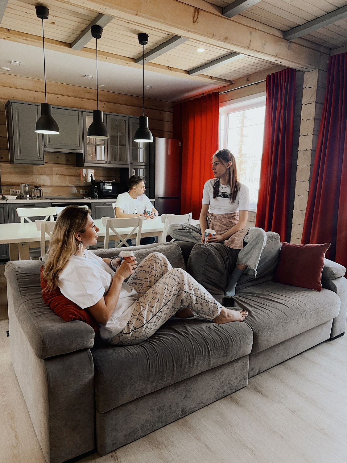 Отдельная комната-гардеробная с системой для сушки оборудования. Продуманная до мелочей гостиная студия. Оборудованная современной техникой, посудой для готовки и сервировки обеденная зона и лаунж-зона с телевизором и акустической системой. Санузел на первом этаже. И три комфортабельных спальни на втором этаже. Две с личными ванными комнатами и одна ванная комната в коридоре, для удобства использования ее гостями, разместившимися в гостиной. Бесплатный Wi-Fi.